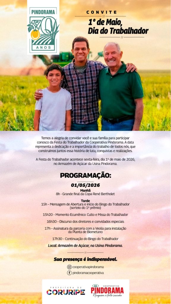 A Festa do Trabalhador da Cooperativa Pindorama também é ponto-chave para que a diretoria da empresa apresente novos investimentos. Em 2026, a boa nova ficará por conta da parceria com a Veolia, para instalação de uma planta que transformará a vinhaça proveniente da produção de etanol em biometano. A multinacional francesa fará o investimento, sem qualquer custo para a Cooperativa alagoana, que entrará com cessão de terreno onde será instalada a planta, além do fornecimento da matéria-prima a ser transformada em biometano.