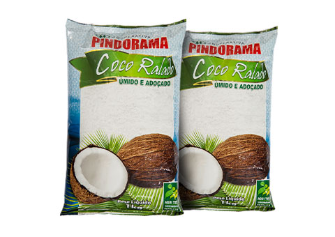 Polpa de coco parcialmente desengordurada, desidratada e açúcar.